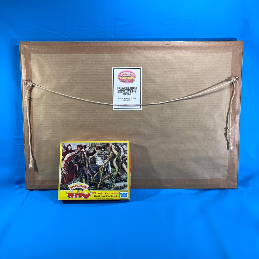 Offered in a hand-cut, burgundy mount and a vintage, glass-fronted frame. This wonderful 224-piece jigsaw shows the Fourth Doctor introducing himself to some mysterious robed figures.