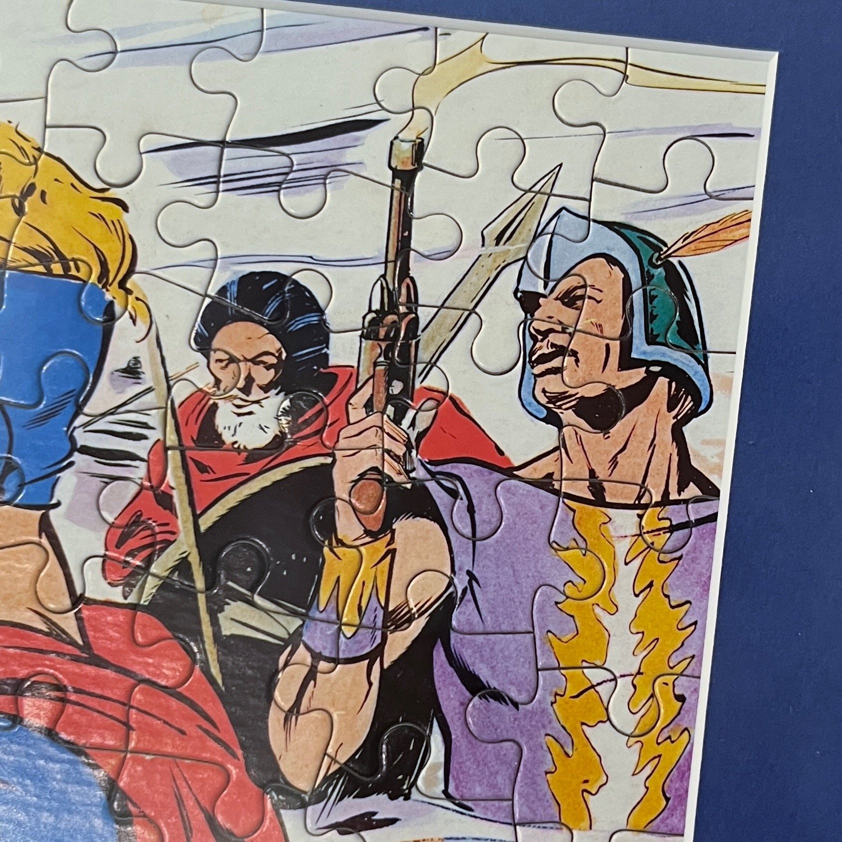 Featuring spectacular artwork by Al Williamson, this action-packed 224-piece jigsaw by Whitman from 1978 shows Flash Gordon, Dale Arden, Prince Barin and Dr. Hans Zarkov driving back the hordes of Ming the Merciless.