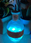The UV LED ribbon, USB powered, causes the luminous beads and hand-mixed luminous resin to fluoresce and give out that lovely blue light.