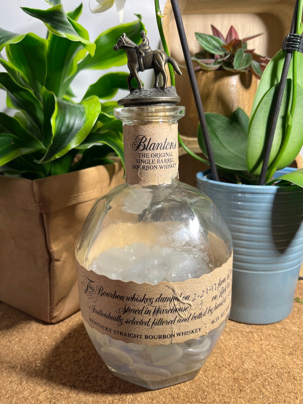 An ex-bottle of Blanton's Bourbon.