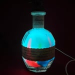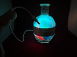 I have coated the inside of the bottle with luminous resins of various colours and pretty much turned it into a lightbulb. I’ve fitted a UV LED ribbon that works like the filament.